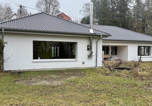 Die Architektur des Bungalows mit Satteldach wird durch zwei Erker, die jeweils mit einem Satteldach versehen sind, geprägt. Durch die beiden Erker entsteht direkt vor dem Wohnbereich eine von zwei Seiten geschützte ...