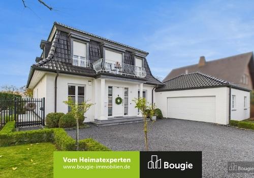 Willkommen in einem Zuhause, das Stil, Großzügigkeit und Leichtigkeit vereint. Dieses elegante Einfamilienhaus beeindruckt bereits beim ersten Blick: Das Mansarddach, die weißen Säulen und die klare Architektur ...