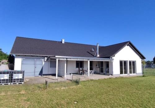 Erdgeschoss: 162,62 m²: Wohnzimmer mit offenem Kamin, Schlafzimmer, Kinderzimmer, Küche incl. Kücheneinrichtung, Speisekammer große Terrasse, 27,62 m² (Stellfläche 55,24 m²), überdacht mit Sandwichplatten (im Sommer ...