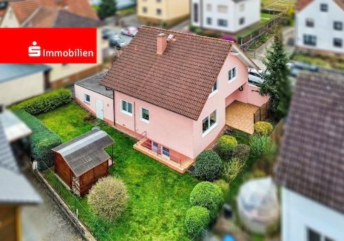 Gepflegtes Einfamilienhaus mit großer Doppelgarage in Klein-Umstadt. Die Immobilie erstreckt sich über 1,5 Etagen und ist voll unterkellert. Das Erdgeschoss besteht aus einem Wohn-/Essbereich mit Zugang zu Terrasse und ...