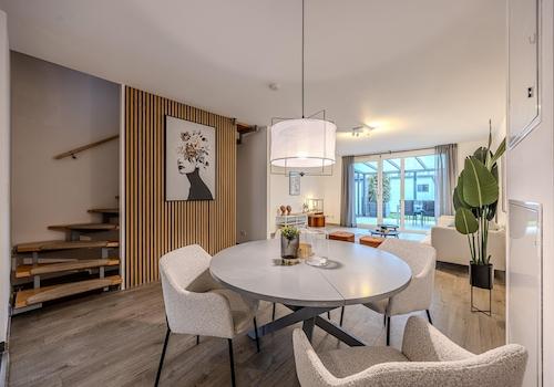 Ein neuwertiges, lichtdurchflutetes Zuhause erwartet Sie. Im Erdgeschoss empfängt Sie ein großzügiger Wohn‑/Essbereich, der dank seiner offenen Gestaltung sofort zum Verweilen einlädt. Die angrenzende, hochwertige ...