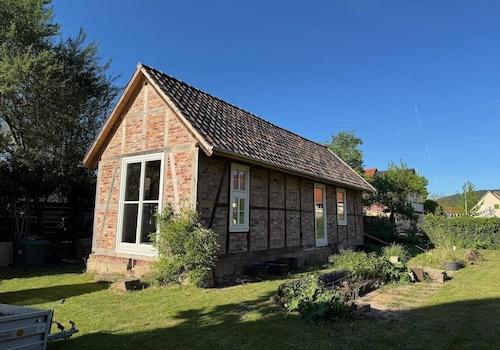 1. Ehemaliges Backhaus (um 1900) •Komplettsanierung zum KfW-Effizienzhaus Denkmal mit Holzfaser- und Hanfdämmung sowie Lehmputz •40 m² Grundfläche, teilunterkellert, Spitzboden als Schlafzimmer •Erdgeschoss: ...