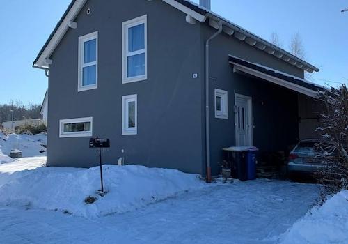 Wir bieten hier ein gemütliches Niedrigenergie Haus in einer ruhigen und dennoch attraktiven Wohngegend am Waldrand. Schule und Kindergarten im Ort sind zu Fuß gut zu erreichen. Im Erdgeschoss befindet sich ein offener ...