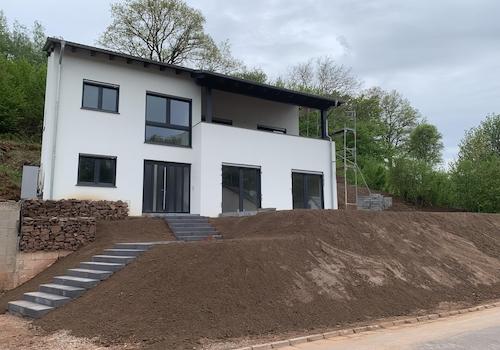 Modernes Einfamilienhaus in ruhiger Lage und gehobener Ausstattung. Das Haus mit zwei gegenläufigen Pultdächern ist massiv gebaut. Die Zimmer sind dank großer Fenster lichtdurchflutet. Dazu gibt es zwei große Terrassen ...