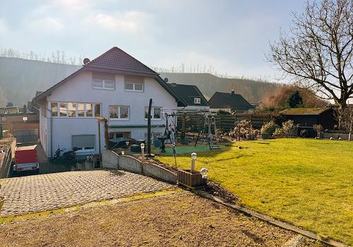 Großes freistehendes Einfamilienhaus mit 2 Garagen, Wintergarten und idyllischem Garten am Feldrand