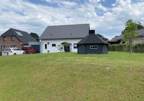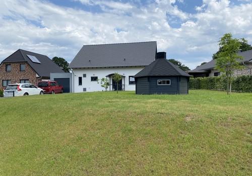 Das Haus steht in einer Sackgasse mit großem Wendehammer für nur 12 Einfamilienhäuser. Hinter dem Haus befindet sich eine auch für die Zukunft unbebaubare landwirtschaftliche Nutzfläche, auf der mal Mais, mal Weizen ...