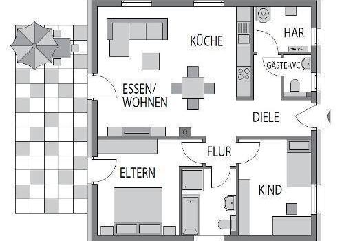 Der Bungalow mit schönen Gestaltungselementen. Wir unterstützen Ihr Vorhaben durch angepasste Baukosten!