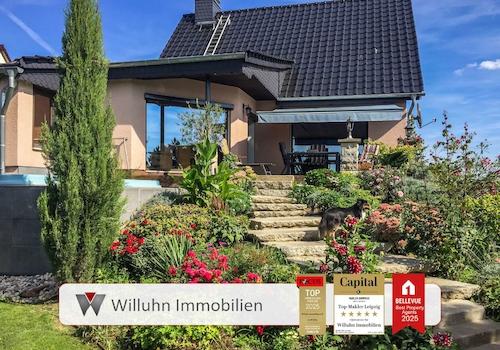 Einzigartiges Einfamilienhaus mit Einliegerwohnung, Pool, Panorama & zahlreichen Highlights in Schkeuditz Dieses außergewöhnliche Einfamilienhaus mit Einliegerwohnung bietet Individualität, Stil und höchste ...