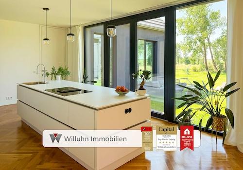 Freistehendes Einfamilienhaus im Norden von Leipzig! - modernster Energiestandard - besondere Architektur - Terrassen mit Gartenanteil - Garage - provisionsfrei Hochwertige Ausstattung: - Wohlfühlbäder mit ...