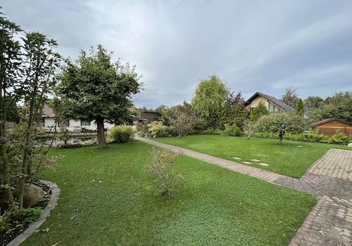 Die Doppelhaushälfte liegt eingebettet in eine grüne Umgebung auf einem weitläufigen, harmonisch durchgrünten Grundstück. Gartenliebhaber, die sich ein erholsames Refugium mit viel Freiraum und einem geschützten ...