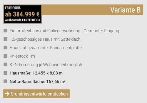 Aktionsdoppel, Preis je Haus