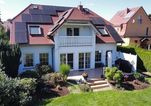 Doppelhaushälfte für zwei Familien auf zwei Etagen mit Keller, 151,14 m² Wohnfläche, Doppelgarage (ursprünglich ein Schuppen) und Gartenhaus. Das Gebäude wurde um 1935 erbaut, die Garage 1938 errichtet und im Jahr 1995 ...