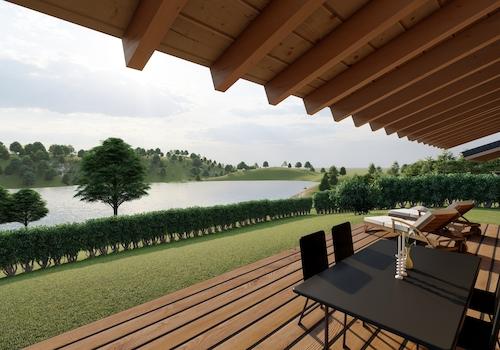 Massivholz-Bungalow mit unverbaubarem Seeblick