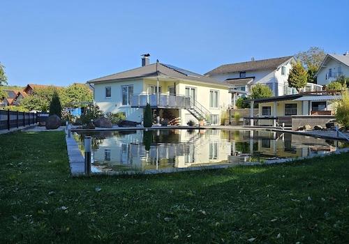 Einfamilienhaus Massivbauweise, Untergeschoss Weiße Wanne Gartenhaus voll ausgestattet Großer Schwimmteich (eigene Quelle) Whirlpool Wanne Kachelofen an Heizung gekoppelt Solaranlage PV Anlage