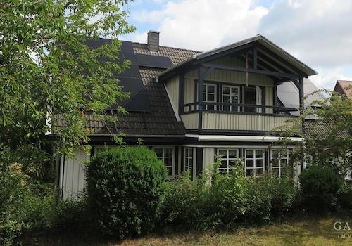 Ein eingeschossiges Wohnhaus mit zwei Wohneinheiten in Stil eines Doppelhauses, ein Untergeschoss, ein ausgebautes Dachgeschoss und insgesamt 213/199 m² Wohnfläche. Das Gebäude verfügt zudem über eine integrierte ...