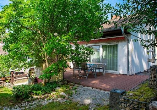 Doppelhaushälfte am südöstlichen Ortsrand mit altem Obstbaumbestand und Blick auf die angrenzenden Wiesen. Herzstück des Hauses ist der im Wohnzimmer eingebaute Kachelofen, der auch die obere Etage mit beheizen kann. ...
