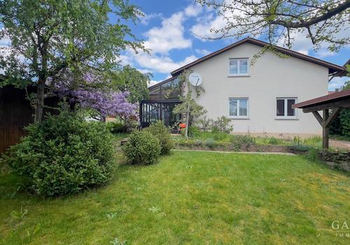 Einfamilienhaus mit separater Einliegerwohnung (Fertighaus von DFH-Massa), einstöckig, ohne Keller, mit ausgebautem Dachgeschoss, insgesamt 182 Quadratmeter Wohnfläche und 12 Quadratmeter Nutzfläche, sowie Carport. ...