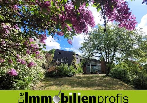 Objektnummer: 1346 - 2 km von Hof: Extravagantes Architektenhaus mit 3.000 m² Grundstück Zum Verkauf steht dieses extravagante Architektenhaus mit parkähnlichem Grundstück vor den Toren der Großen Kreisstadt Hof. Auf ...