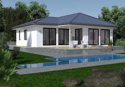 Dieser hübsche Winkelbungalow steht für barrierefreies und komfortables Wohnen auf einer Ebene. Ohne Stufen bietet sich dieser Haustyp perfekt für Menschen mit besonderen Ansprüchen an. Jede Menge Platz und einen ...