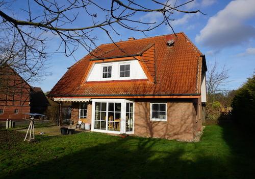 Wohnhaus in Holzbauweise, Terrasse und Garten