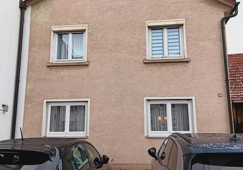 Ein kleines nettes Haus mitten in der Stadt mit Parkplätzen und einer großen Garage. Sehr guter gepflegter Zustand. Angebaut ans Nachbarhaus und ein nebenan stehendes Geschäftshaus. Kleiner Garten, überdachter Schuppen ...
