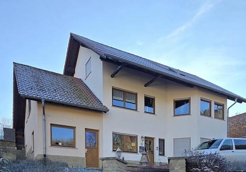 Ein Einfamilienhaus in teilweise Fachwerkbauweise, zweistöckig, ohne Keller, mit einer Wohnfläche von 176 m². Es verfügt über ein Scheunen- / Stallgebäude und mehrere Schuppen und wurde um 1892 gebaut. Die ...