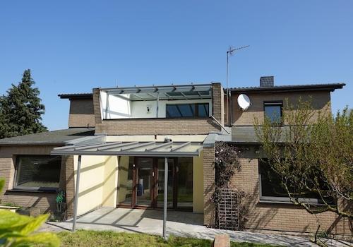 Ein Reihenmittelhaus für eine Familie mit einer zusätzlichen Wohnung im Dachgeschoss. Das Haus ist einstöckig, teilweise unterkellert, mit ausgebautem Dachgeschoss und einer Gesamtwohnfläche von 104 m². Es verfügt über ...
