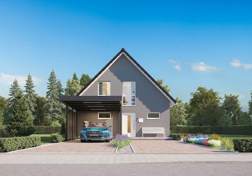 Das moderne Stadthaus von STREIF wird von einem Übereck-Erker und einem überdachten Hauseingang mit angeschlossenem Carport akzentuiert. Auf einer Raumgrundfläche von 158 m² sind 3 Schlafräume, 2 Bäder, ein ...