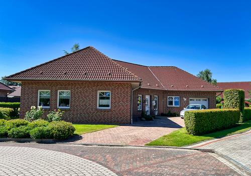 Zuhause in Weener: Großzügiger Bungalow mit Garten, Teich und überdachter Terrasse