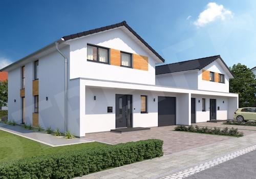 Auf einem Grundstück von 730 qm werden zwei Profilgleichen Häuser geplant. Die Garagen mit der Einfahrt wurden zwischen den Häusern auf die Grundstückgrenzen gesetzt. Das spart Platz und mach damit ein Unterschied zur ...