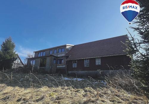 1-stöckiges Einfamilien-Doppelhaushälfte, aufgeführt im Jahr 1953, mit einer Wohnfläche von 100 m², Keller und ausgebautem Dachgeschoss. Zudem verfügt es über eine Garage, ein ehemaliges Stallgebäude, einen überdachten ...