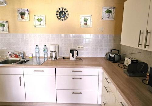Solides Zweifamilien-Reihenmittelhaus; 2, 4 stöckige Massivbauweise, Keller; Baujahr 1991; Anbau ca. 1967; Garage, ruhige Lage in einer Sackgasse; die Immobilie ist renovierungsbedürftig; 2 x 3 ZKB; sep. G-WC verteilen ...