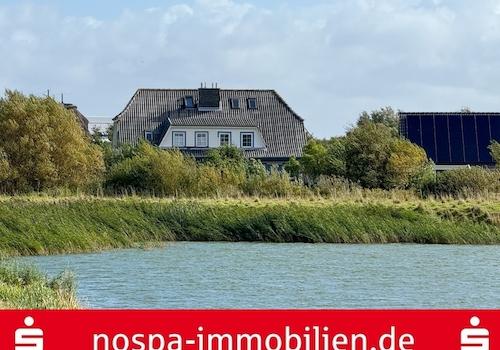 Doppelhaushälfte zzt. in 2 Wohneinheiten aufgeteilt mit Blick auf einen kleine See direkt hinter dem Außendeich. 876/0-13142 Nordstrand Sauna, Wasserblick und Nordseeluft: Die perfekte Idylle zum Entspannen! ...