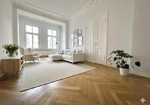 Die exklusive Altbauwohnung befindet sich in der dritten Etage eines repräsentieren Gründerzeithaus. Auf rund 280 m² erstreckt sich die Wohnung über das Vorderhaus und den Seitenflügel mit einer Ost-/Südausrichtung. Im ...
