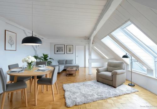 Angeboten wird ein helles und ruhiges Dachgeschoss mit Südterrasse. Der Lift bringt sie bis in die 4. Etage, so dass die Wohnung bequem zu erreichen ist. Die Wohnung mit 4 Zimmern erstreckt sich über das Vorderhaus ...