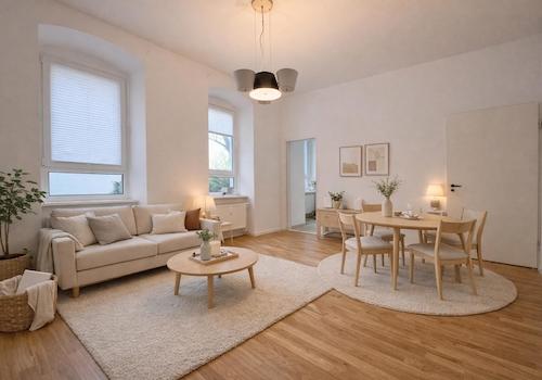Entdecken Sie ein charmantes Refugium, das den Charakter der Jahrhundertwende mit modernem Komfort verbindet. Diese gemütliche Wohnung im dritten Stock bietet großzügige Räume mit hohen Decken und großen Fenstern, die ...