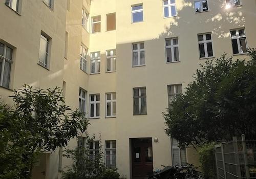 Baujahr um 1900 gepflegtes Gemeinschaftseigentum liebevoll gestalteter Innenhof Hinterhaus gepflegt gut geschnitten Kunststofffenster Laminatboden Wandschrank Hängeschränke im Flur Tageslichtbad mit Badewanne Keller ...