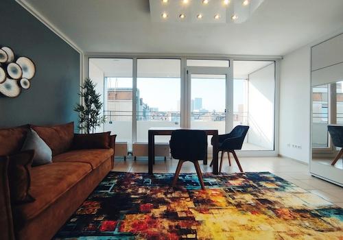 Dank der großen Fensterfront ist diese bereits möblierte Wohnung schön hell, mitten in Mainz im 6. OG eines Hochhauses gelegen, einige Schritte vom Münsterplatz entfernt. Ideal, um die Mainzer Innenstadt zu erleben. ...