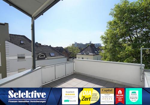Hier angeboten wird eine große und moderne Eigentumswohnung mit Dachterrasse in sehr zentraler Lage von Moers. Die in 2016 komplett sanierte und renovierte 3-Zimmer Eigentumswohnung mit ca. 20 m² großer Dachterrasse, ...