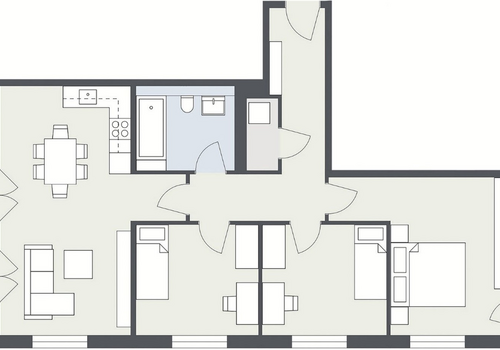 Die Drei-Zimmer-Wohnung befindet sich im ersten Obergeschoss eines Sechs-Parteien-Hauses. Die gut geschnittenen Räumlichkeiten bieten Platz für zwei bis drei Personen. Der großzügige Wohn- und Essbereich bietet ...