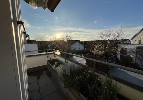 Im Dachgeschoss eines aufwändig in den 90-er Jahren kernsanierten ehemaligen Bauernhauses gelegen, entfaltet diese Maisonettewohnung ihren ganz besonderen Charme: Der offene Sichtdachstuhl schafft ein beeindruckendes ...
