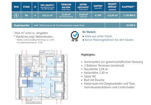 4-Zimmer Neubau Luxuswohnung (1), mit 2 Terrassen, Garten und Haushaltsraum