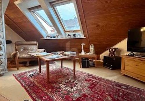 Diese lichtdurchflutete Dachgeschosswohnung in einem kleinen Mehrfamilienhaus mit nur fünf Parteien bietet eine ideale Mischung aus modernen Annehmlichkeiten und gemütlichem Flair. Ein stilvoller Kamin im Wohnzimmer ...