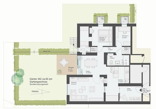 Gartenetage Loft-Charakter - 78qm, 4 Zi - Blankeneser Treppenviertel Elbblick