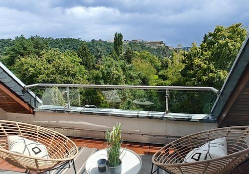 HIER WERDEN SIE SICH WOHLFÜHLEN!! Eine süße, helle und lichtdurchflutete Wohnung in zentraler Lage mit 2 Balkonen und Aussicht auf die Festung Koblenz Ehrenbreitstein! Die Wohnung verfügt über 1 großes Wohnzimmer, 1 ...