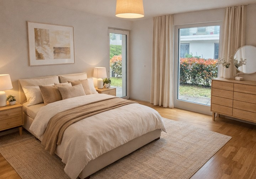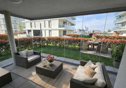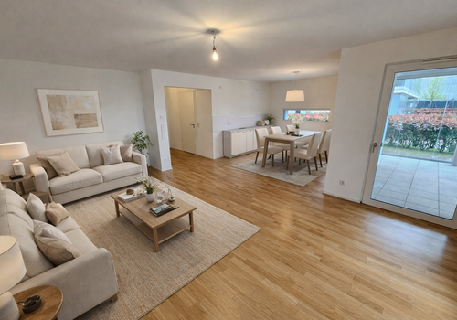 Wohnen wie im eigenen Haus – moderne Gartenwohnung am Altrhein mit Terrasse & Tiefgarage