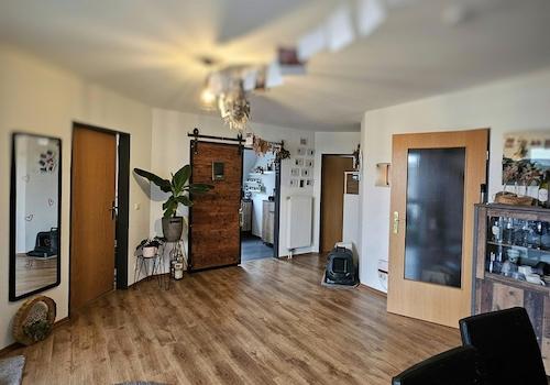 4-Zimmer-Wohnung mit 100 qm Wfl. im Obergeschoss eines Zweifamilienhauses mit Balkon; Baujahr 1977, die Wohnung wurde im Jahre 2009 modernisiert - dazu Kellerräume mit 27 qm Nfl., Dachboden mit 86 qm Nfl. und ...