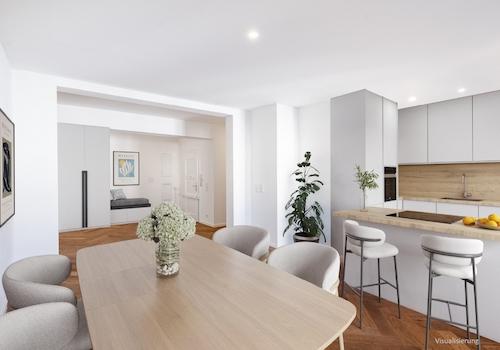 Diese stilvolle Etagenwohnung in München-Schwabing im dritten Stock eines modernen Gebäudes von 2014 erstreckt sich über ca. 135 m² exklusiven Wohnraum. Im Mittelpunkt steht der weitläufige Wohn-Ess-Kochbereich mit ...