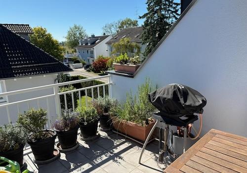 Die lichtdurchflutete, helle Dachgeschoss Maisonettewohnung mit bis zu 4,80 m hoher, offener Dachgalerie befindet sich in ruhiger Lage direkt am Stadtrand. Von der sonnigen, teilweise überdachten Dachterrasse reicht ...