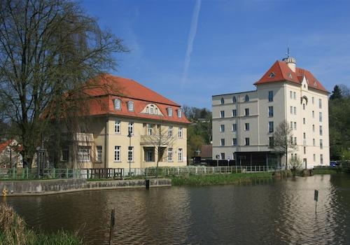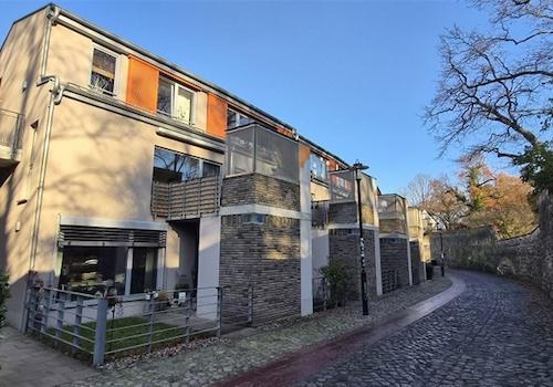 ... Wohnen auf 2 Ebenen in der denkmalgeschützten früheren Mühle - offene Küche - Bad mit Wanne - Wendeltreppe - 46 m² große Sonnenterrasse - Fahrstuhl mit Schlüsselschalter - eigener PKW-Stellplatz